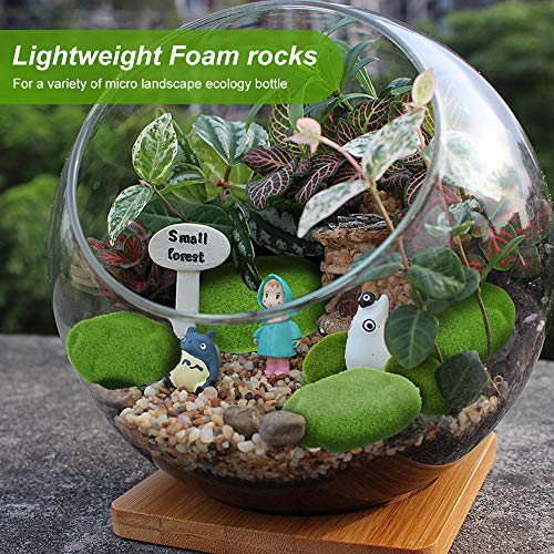 Ideale per Fai-da-te: Le bellissime rocce di muschio verde chiaro e sfocato sembrano reali e belle, le pietre ricoperte verdi sono perfette per fai-da-te di fiori secchi, fiori artificiali e vasi.