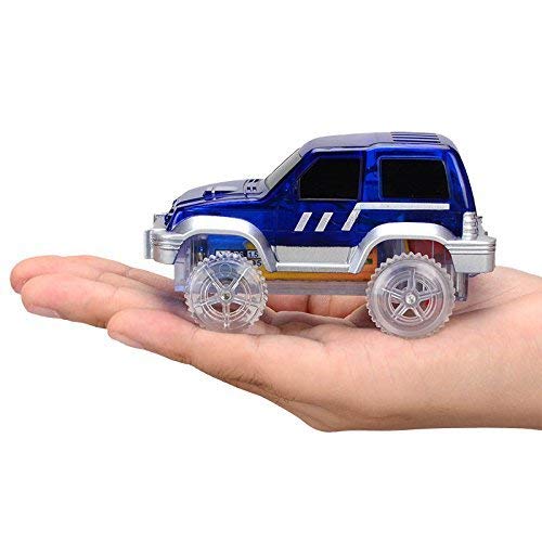 Queste auto da pista luminose sono dotate di un'auto cingolata blu e rossa. La carreggiata leggera può essere utilizzata con la nostra no-track ed è compatibile con tutte le tracce di giocattoli simili, come 360-loop, Build-A-Road e molto altro.