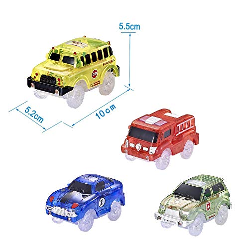 CODOMOXO ® Set di 4 Magic Tracks auto luminose per il tubo del circuito magico (4 pezzi)