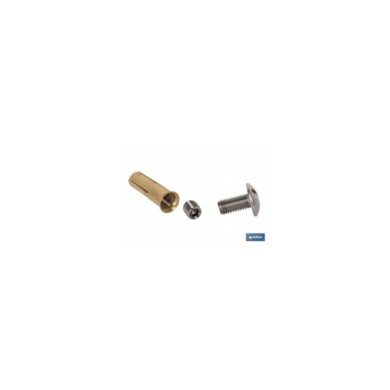 Kit speciale per ancoraggi di coperture in piscina. Perno a vite in acciaio inossidabile agli asparagi e tassello in ottone con colletto. Set speciale per ponti di ancoraggio. Ancora con viti speciali per piscine.