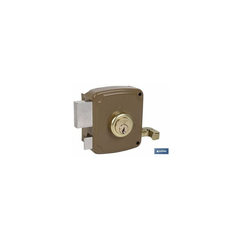 Blocco sovrapposto. Leva in acciaio. Cilindro tondo più 3 chiavi (2 mandate). Percussore e scudo inclusi. Chiusura e maniglia interna. Finitura smaltata. Contiene viti per il fissaggio. Caratteristiche tecniche: Misura [mm]: 80 A