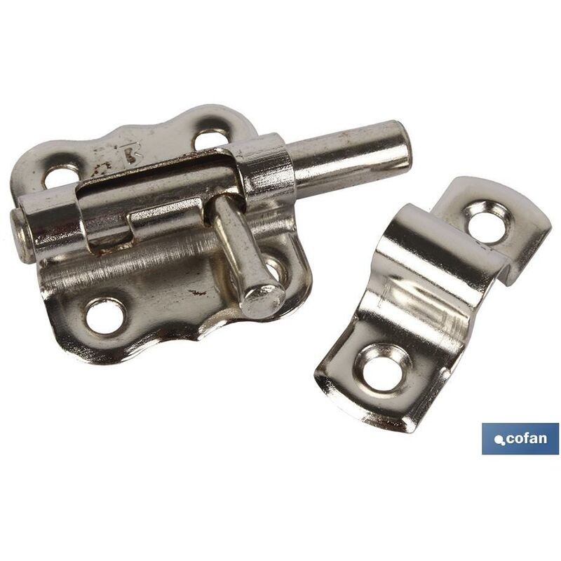 Perno di chiusura Perno di chiusura nichelato e ottonato da 30, 40, 50 e 60 mm in blister singolo. Alta: 2,00 Larghezza: 5,00 EAN: 8445187238372 Peso (kg): 0,054 Profondità: 7,00 Riferimento: 61001113A-U