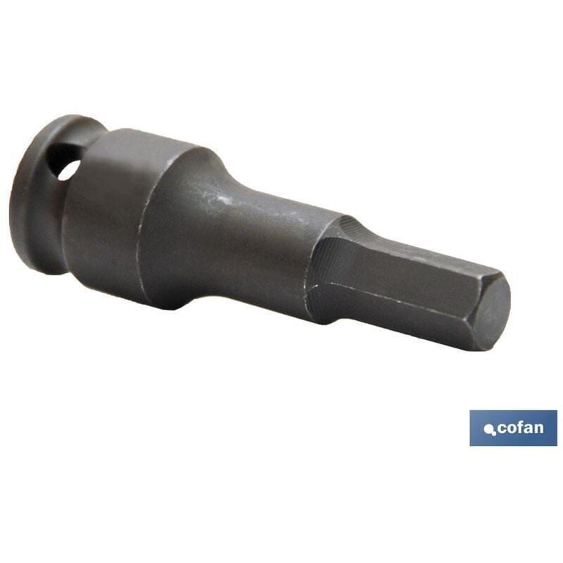 Bussola ad impatto nera bocca a brugola maschio lunga 3/8'. Misure da H-3 a H-16 Caratteristiche tecniche: Metrico: 9mm