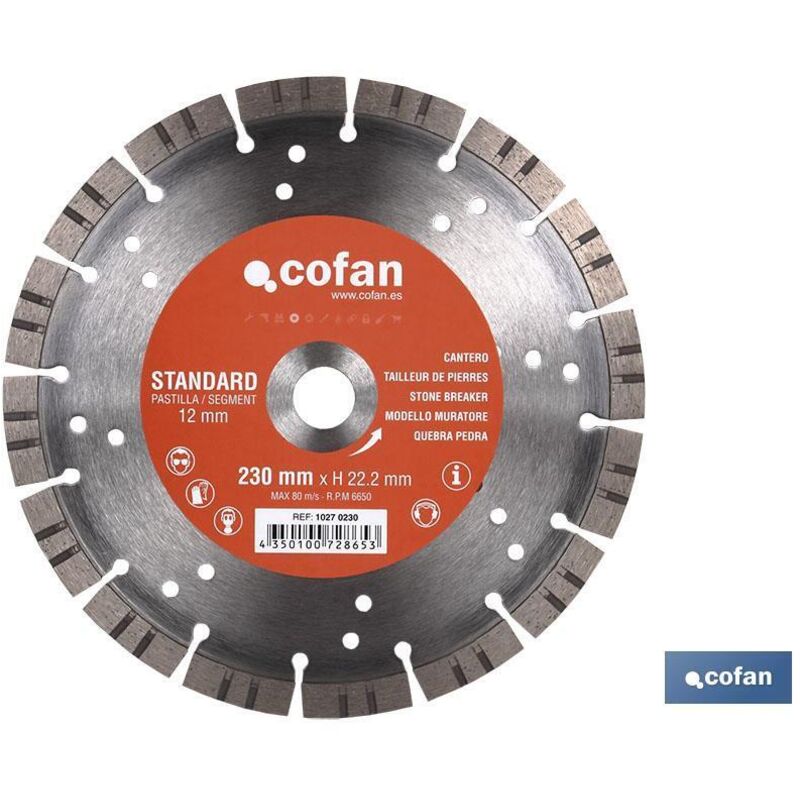 Disco Speciale Diamantato Cantero Standard ventilato con platorello alto 12 mm. Caratteristiche tecniche: Misura: 230 mm Segmento [mm]: 12 mm