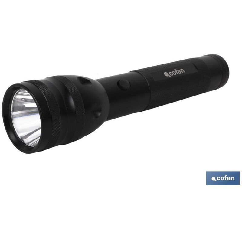 Torcia in alluminio Led 3W 160 lumen con misure di 5,5 x 25cm 3 funzioni distanza 100 metri grado IPX3