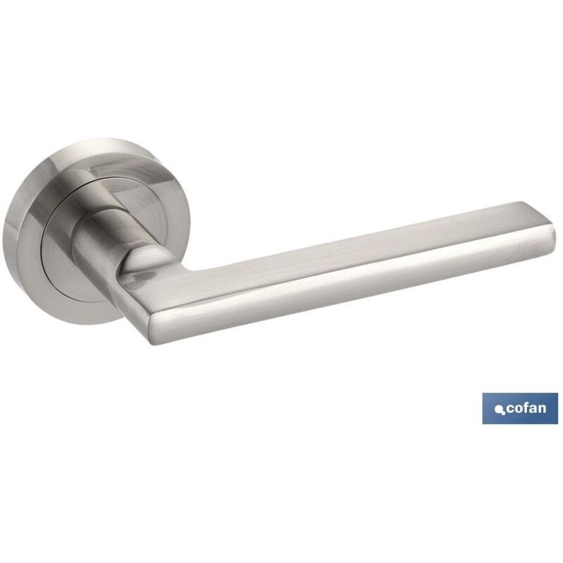 Guarnitura Vienna in alluminio con rosetta tonda in Nickel. Caratteristiche tecniche: Materiale: Alluminio/Nichel Misure: 108 x 59 mm Diametro: 50 mm