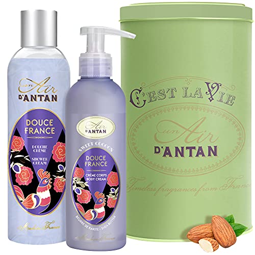 Cofanetto Regalo DOUCE: 1 Gel Doccia Idratante 250ml,1 Crema Corpo Nutriente 200ml, Profumo: Mandorle e Fichi/Un Air d'Antan®/ In Una Bella Scatola/Regalo Mamma/Senza Parabeni/Idea Regalo Originale