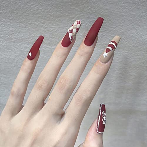 Coffin Long Fake Nail Cover completa con colla rimovibile Red Christmas Tree Press on Nails 24 pezzi Finger Nail Art Tips per Nail Art Salons e Donne DIY Nail Art