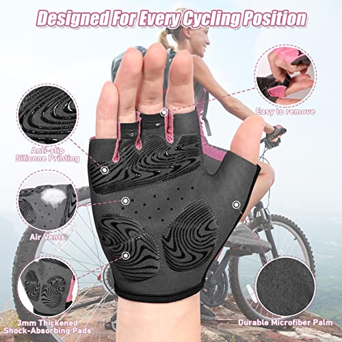 COFIT Guanti da Ciclismo a Mezze Dita, Traspiranti e Antiscivolo Unisex Guanti da Ciclismo con Cuscinetti Ammortizzanti per l'estate BMX MTB, Corsa su Strada e Allenamento - Rosa L