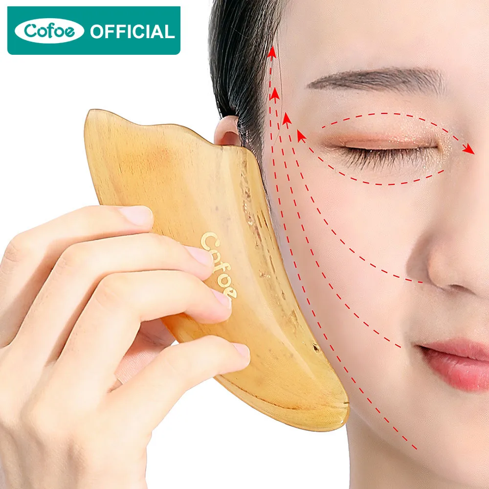 Cofoe Gua Sha Scrapping Plate Board Gouache Scraper OX Horn Gusha Therapy Massage for Chinese Medical Skincare