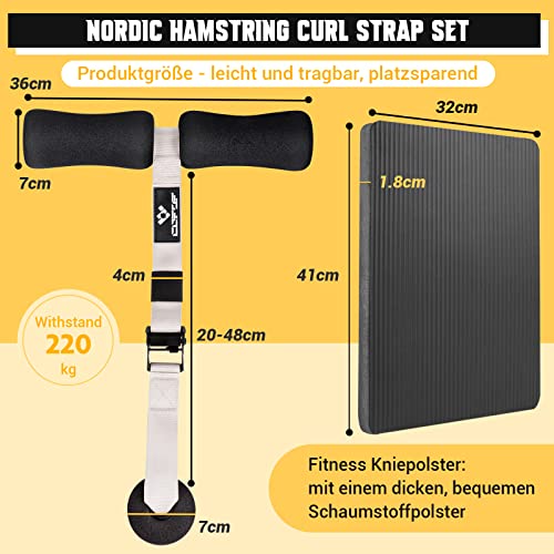COFOF Nordic Hamstring Curl Strap, adatto per gambe, addome e schiena, portatile, accessorio per fitness, può sostituire grandi attrezzature di allenamento, dotato di ginocchiere fitness (grigio)