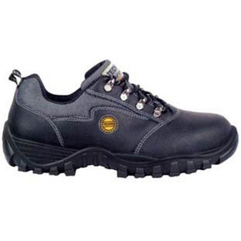 Tomaia in pelle nera idrorepellente con doppie cuciture e tessuto traspirante - fodera in texelle traspirante, assorbente e deassorbente, antiabrasione - fussbett intero, estraibile, antistatico, rivestito in texelle - puntale in acciaio di protezione del