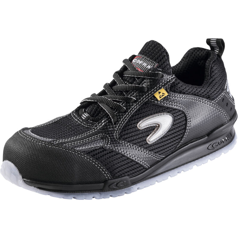Scarpa di sicurezza KRESS dal design sportivo. * Tomaia in tessuto traspirante BREATEX. * Fodera interna in 100% poliestere, traspirante, antibatterica e resistente all'abrasione. * Plantare anatomico e forato in PU, ammortizzante. * Suola esterna in PU/TPU. * Spunterbo in cuoio. * Caratteristiche ESD. Norma: EN ISO 20345:2011 S1P SRC Einlagenversorgung baumustergeprüft nach DGUV Regel 191. Dati tecnici Proprietà elettrostatiche EGB/ESD Tipo di prodotto Calzatura bassa di sicurezza Genere da uomo Norma Fornitura di inserti omologati a norma DGUV 191 Colore nero Grado di protezione S1P Resistenza antiperforazione Tessuto Numero di scarpa UE 43 Materiale puntale protettivo Alluminio