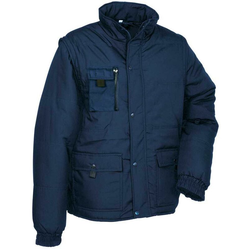 Giubbotto da lavoro Cofra Enisej, ad alta qualità, di ottima resistenza e consistenza, tessuto caldo, imbottito, adatto per il periodo invernale, garantisce la massima sicurezza, comfort, comodità e praticità nel movimento, per vari settori lavorativi Giubbotto da lavoro Cofra Enisej, ad alta qualità, di ottima resistenza e consistenza, tessuto caldo, imbottito, adatto per il periodo invernale, garantisce la massima sicurezza, comfort, comodità e praticità nel movimento, per vari settori lavorativi. -LINEA_1: ENTRY-L WINTER -TIPOLOGIA: giacca imbottita -NORMATIVA: EN ISO 13688:2013 -DESCRIZIONE: 1 tasca sul petto con zip, maniche staccabili con zip, polsini elasticizzati, tasca interna, tasca portacellulare -COMPOSIZIONE: TD213TESSUTO ESTERNO: 65% poliestere, 35% cotone - Imbottitura: 100% poliestere - 120 g/m² - Fodera: 100% poliestere -GRAMMATURA: 140 g/m² -COLORE: 02 navy -AREA D'USO: agricoltura, edilizia, industria, logistica, per ambienti freddi -GENERE: UOMO -PERFORMANCE E