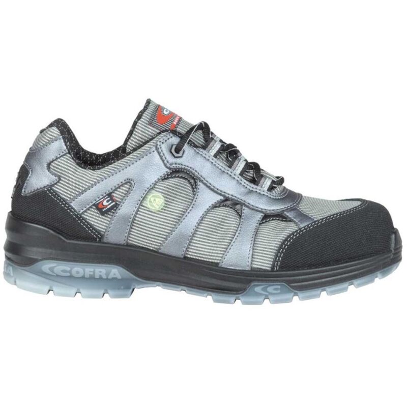 Scarpe Cofra con livello di Sicurezza S1 P - Serie OUTDOOR / SPECIALS, modello FOXTROTScarpa bassa della linea Cofra OUTDOOR (con modelli leggeri e antiscivolo) appartenente anche alla serie SPECIALS, ricca di calzature concepite per l'utilizzo nell'industria microelettronica, con resistenza elettrica verso terra.Con tomaia in AIRFREEDOM FABRIC ad alta tenacità, altamente traspirante e MICROTECH.La fodera SPHERA, 100% poliammide, traspirante, resistente allo strappo, antibatterica e antiabrasione.La soletta METATARSAL SUPPORT ESD, in poliuretano soffice e profumato rivestito in tessuto, anatomica, estraibile,ha inoltre una bassa resistenza elettrica e garantisce l'assorbimento dell'energia di impatto (shock absorber) assicurando contemporaneamente un isolamento termico.La suola è stampata in poliuretano e il battistrada in TPU con bassa resitenza elettrica.La sicurezza del piede è garantita dalla morbida lamina antiperforazione in tessuto APT PLATE Zero Perforation e dal puntale non