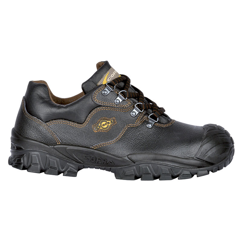 Scarpe Cofra con livello di Sicurezza S3 - Serie TECHNO, modello NEW VOLGA UK Scarpa bassa della linea Cofra TECHNO con tomaia in pelle stampata idrorepellente capace di garantire la sicurezza del piede grazie ad un puntale in acciaio resistente a 200 J e lamina in acciaio INOX, oltre che con un'ulteriore protezione frontale in poliuretano antiabrasione. La fodera in tessuto TEXELLE traspirante, assorbente e deassorbente garantisce un'elevata protezione contro le abrasioni dei malleoli e del piede in genere. La confortevole soletta forata AIR, adotta una mescola antistatica in EVA+tessuto e un design a spessori diversi lungo la superficie plantare per massimizzare il comfort. La suola, che neutralizza impatti fino a 30J è stampata in poliuretano bidensità con trama antiscivolo. Dati Tecnici Tomaia Pelle stampata idrorepellente Fodera TEXELLE traspirante, assorbente e deassorbente, antiabrasione Soletta AIR anatomica e antistatica forata in EVA e tessuto Suola Poliuretano bidensità