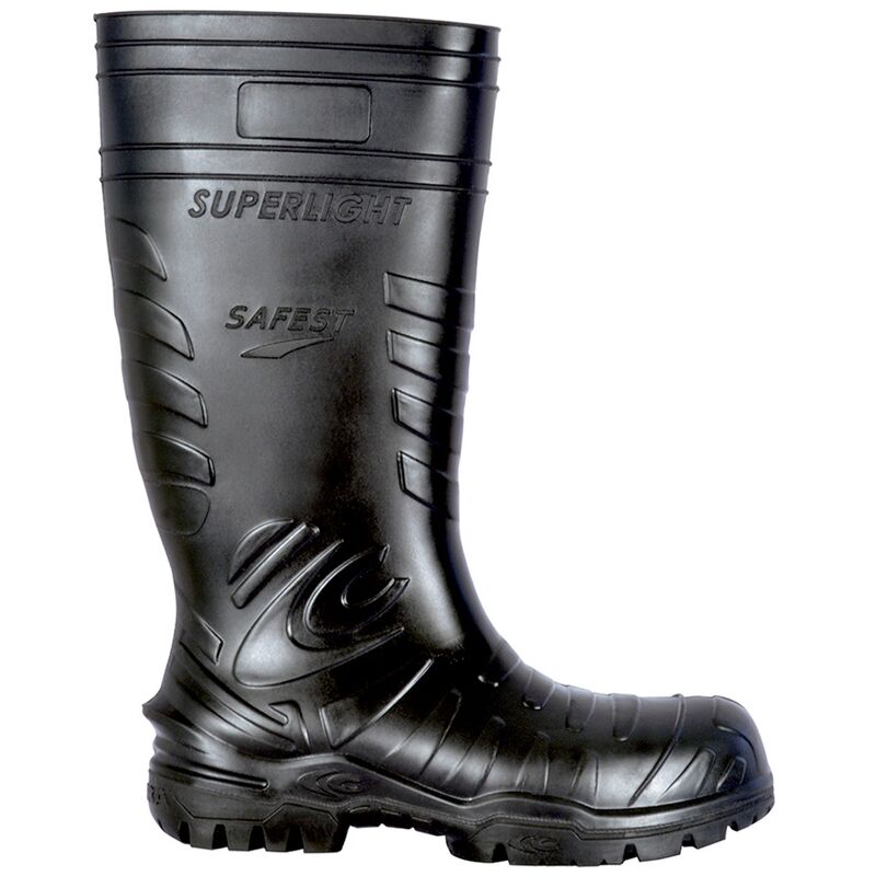 Stivali Cofra con livello di Sicurezza S5 - Serie PU-BOOTS, modello SAFEST BLACKGli stivali della serie Safest grazie alla speciale mescola poliuretanica COLD DEFENDER PU, risultano altamente isolanti alle basse temperature, rendendo il gambale anatomico, leggero e flessibile.Il battistrada in gomma nitrilica è altamente resistente allo scivolamento, anche in terreni difficili.La soletta è anatomica, antistatica in poliuretano rivestita in tessuto con spessori diversi garantisce un comfort ottimale e rilascia un gradevole profumo.Puntale in COMPOSITE resistente fino a 200 J. Lamina non metallica.Le calzature sono resistenti agli idrocarburi. Con sperone per facilitare lo sfilamento. Dati Tecnici GambaleCOLD DEFENDER PU resistente a -25°C BattistradaCOLD DEFENDER PU resistente a -25°CSolettaMETATARSAL SUPPORT in poliuretano PuntaleNon metallico TOP RETURN LaminaNon metallica APT Plate - Zero perforation