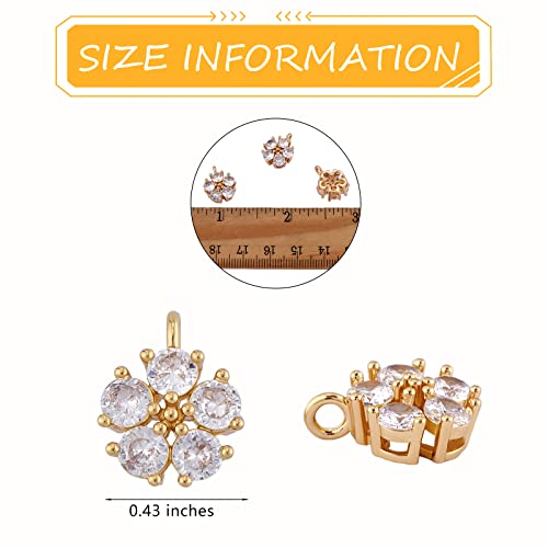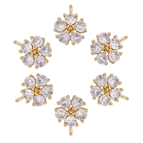 COGCHARGER 6 Pezzo Ciondolo con Ciondolo A Forma di Fiore di Zirconi Cubici Ciondolo in Ottone CZ Ciondolo Placcato in Oro 18K Reale per Gioielli Collana Orecchini Fare Artigianato