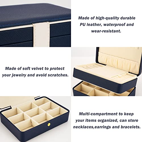 Coikes Mini Porta Gioielli Donna 3 strati 16,5x11,5x8cm Pelle Sintetica Scatola Portagioielli da Viaggio Portatile Organizer Gioielli Regalo per le donne Ragazze Anelli Orecchini Collane (Blu Navy)