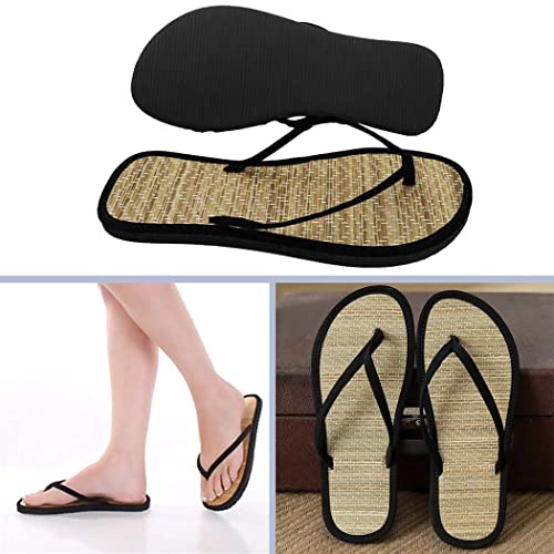 COITROZR Infradito Paglia Donna Uomo, Ciabatte in Paglia Sandali Scarpe Comode Moda Estive Pantofole Antiscivolo Ciabatte Eleganti Flip Flops,Nero,40