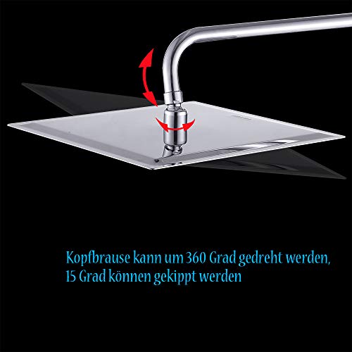 Cokvok Soffione doccia a pioggia fisso, soffione quadrato da 12 pollici in acciaio inossidabile 304, soffione doccia a pioggia 30x30 cm, cromato lucido a specchio