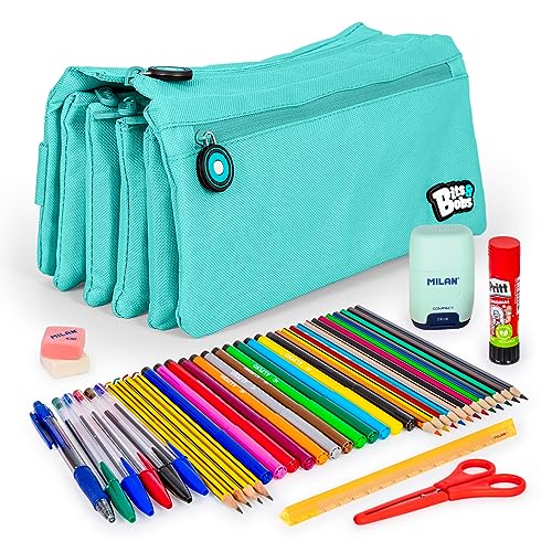 ColePack - Set di Astuccio Scolastico Quadruplo con 4 Cerniere e Materiale Scolastico delle Migliori Marche Incluso (Blu C.)