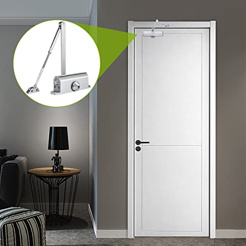 Colexy Chiudiporta Automatico Idraulico Chiudiporta a Molla Regolabile Chiudiporta da Alto Braccio Standard Chiudiporta lega di Alluminio antincendio per Commerciale/Domestico, 25-65 kg, Argento