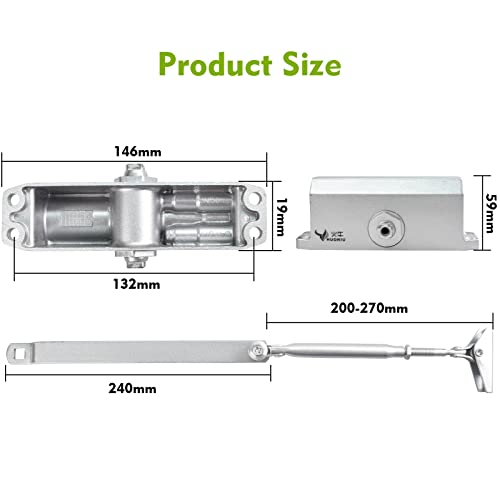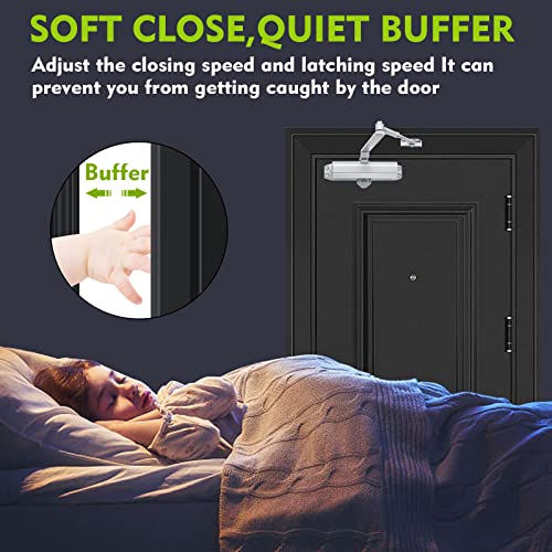 【Alta qualità】 Il chiudiporta idraulico è realizzato in lega di alluminio, a comando idraulico, chiusura completamente automatica, velocità regolabile, con esso non devi preoccuparti di aprire e chiudere la porta. Il chiudiporta idraulico ha superato la certificazione 4C nazionale e il test antincendio per proteggere la serratura della tua porta.