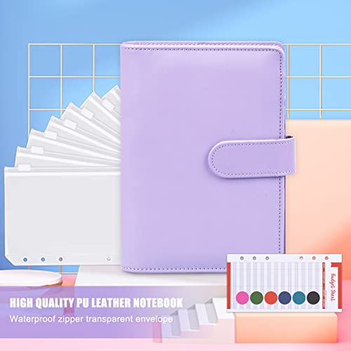 Colexy Raccoglitore Bilancio A6 Fogli, PU Raccoglitore Ad 6 Anelli in Pelle, Raccoglitore Di Bilancio Con Buste a Cerniera, Con 12 Fogli Di Bilancio 8 Buste Trasparenti, Raccoglitore Documenti, Viola