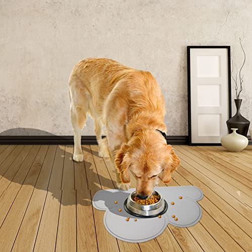 Colexy Tappetini Sottociotola in silicone per Cani/Gatti, Tappetino per Ciotola di Cibo Antiscivolo per Animali, Tappetino per Alimenti a per Cani, 48x26 cm, Grigio (Forma di Nuvola)