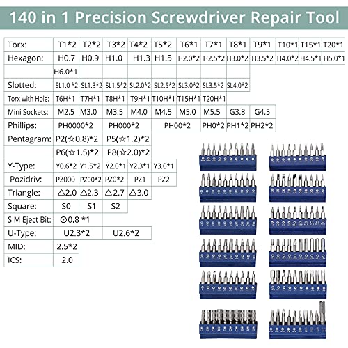 COLFULINE 140 in 1 Kit di Cacciaviti di Precisione, Kit di Strumenti di Riparazione di Cacciaviti di Precisione Strumento Magnetico Rimovibile Professionale per iPhone X, 8, 7, Cellulare, Tablet ecc