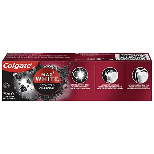 Colgate Zahnpasta Max White Charcoal, 12 x 75ml - Zahncreme mit Aktivkohle, entfernt bis zu 100% der oberflächlichen Verfärbungen