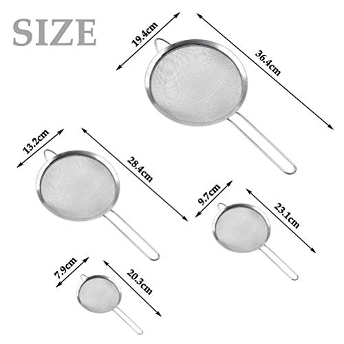 4 diverse dimensioni per scopi diversi: la confezione include 4 colini da cucina a maglia fine per scopi diversi. La confezione include: 1 colino da 8 cm, 1 colino da 10 cm, 1 colino da 14 cm e 1 colino da 20 cm, un set completo più adatto alle tue esigenze.