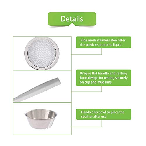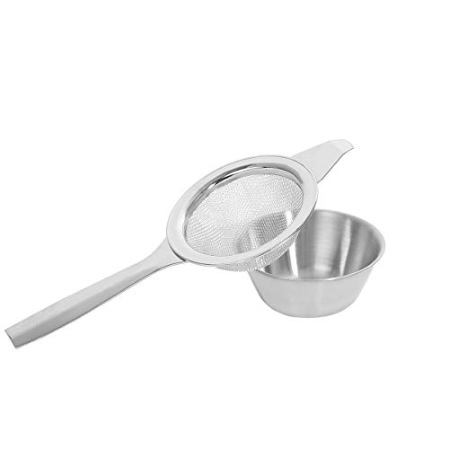 Colino da tè con ciotola raccogli gocce in acciaio inossidabile per uso alimentare sicuro di, il manico è in metallo, facile da pulire, lavabile in lavastoviglie