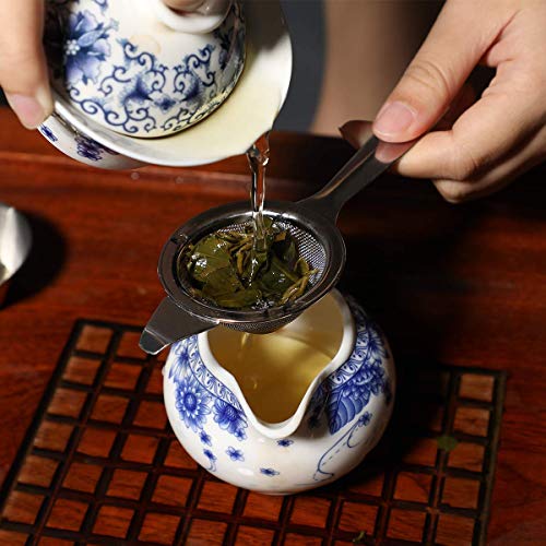 Colino da tè, Aieve colino in acciaio INOX, con manico lungo con sistema salvagoccia per filtro per tè, tè sfuso in foglie