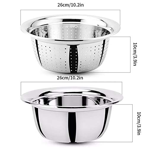 Set di colino e ciotola in acciaio inox impilabile, ciotola da insalata riutilizzabile per cucinare mescolando la cucina servendo ciotola filtro cestino per frutta verdura riso lavaggio (2 pezzi)