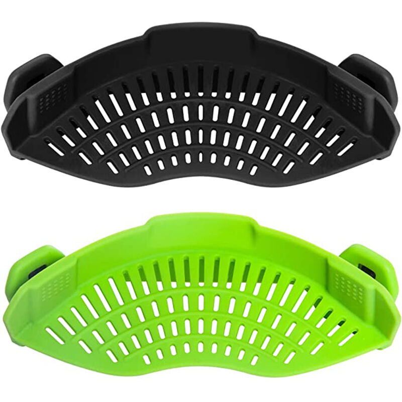 Design avanzato - : questo colino a scatto è costituito da due robuste clip per tenere il colino in silicone sulla pentola. Il design intelligente rende questo scolapasta universalmente adattabile a tutte le ciotole e padelle. Lo scolapasta è grande la metà di uno scolapasta tradizionale, il che lo rende molto pratico nelle cucine con spazio limitato. [Materiale alimentare]: questo scolapasta a scatto è realizzato in silicone sicuro e non tossico, Senza BPA, altamente resistente all'abrasione, resistente al calore, durevole e inodore. Può resistere a un intervallo di temperatura di -40°C + 230°C. [Facile da usare]: basta agganciare questa clip al colino sul bordo di una padella o di una ciotola e sei pronto per filtrare e versare con facilità noodles, noodles, frutta, verdura, ecc. L'uso di questa clip per uno scolapasta può farti risparmiare un sacco di noodles. [Facile da pulire]: dopo aver usato questo scolapasta a clip, basta allentare la clip ed è lavabile in lavastoviglie.