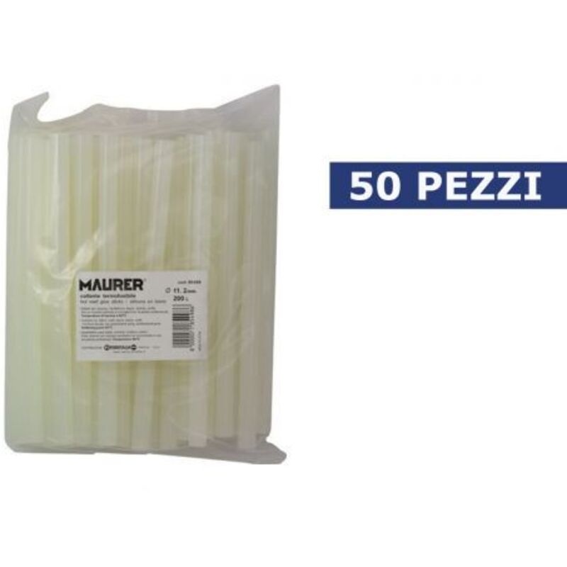 COLLA TERMOFUSIBILE 50 PEZZI Colla termofusibile trasparente diametro 11.2 x 200mm. Adatta per tessuto,modellismo,legno,cartone,stoffe ecc. Temperatura di fusione: 84° C. CONFEZIONE DA 1 KG