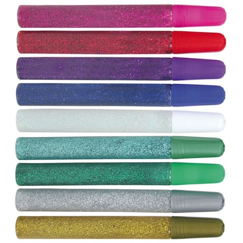 Colore brillantinato Utilizzabile come adesivo o per decorazione Lavabile in lavatrice. Diametro 12mm Lunghezza 90mm Numero stick 9 Asciuga in 30 minuti. DIMENSIONI: Altezza: 215mm Larghezza: 155mm Profondità: 20mm