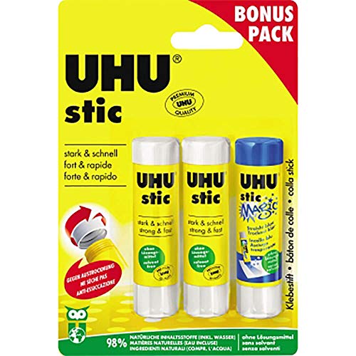UHU Stic - Colla stick, 2 pezzi da 8,2 g, con in regalo 1 Stic Magic