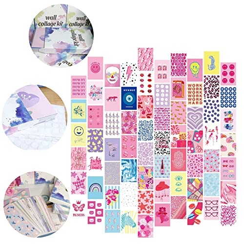 ✨ 【kit collage da parete per immagini estetiche】 70 pezzi 10x15 cm il set di kit collage estetico due opzioni: immagini rosa e verdi. Viene fornito con 150 cuscinetti adesivi bianchi autoadesivi non macchianti.