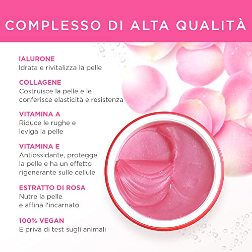 Collagene Patch Occhi Maschera per Gli Occhi anti Rughe | Vegan con ialurone e collagene | Senza oli e parabeni | Gel rinfrescante per gli occhi con effetto lifting istantaneo | 30 pezzi