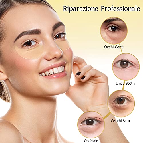 Collagene Patch Occhi, Patch Occhiaie e Borse, 24K Maschera Occhi per Occhi Gonfi, Occhiaie, Anti Rughe, Idrata Anti-Età, Cura della Pelle, Idratante, Lenitiva (60 Pcs)