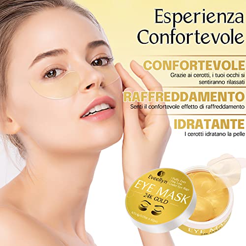 ✨Anti-Aging & Reduce Dark Circles & Puffiness: Eveellyn Oro 24K cerotti per occhi promuove la circolazione sanguigna intorno alle aree degli occhi. Ammorbidire e riparare la pelle intorno agli occhi, ridurre notevolmente i problemi della pelle degli occhi come occhiaie, gonfiore, linee sottili, borse per gli occhi, rughe
