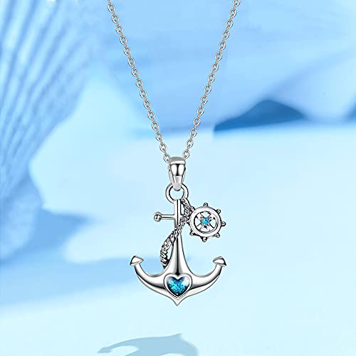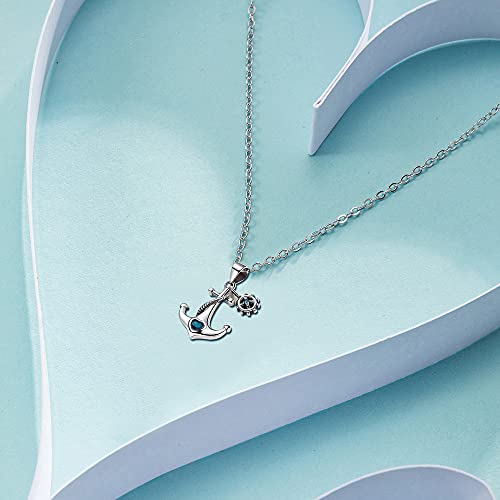 Collana con Ancora in Argento Sterling 925 Ciondolo Cuore Blu Oceano per Donna Uomo