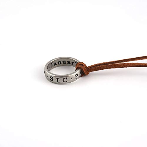 Collana con anello di Nathan Drake di Uncharted 4, con incisione e cordino in pelle regolabile, fatta a mano, unisex, per cosplay e appassionati del gioco, Zinco