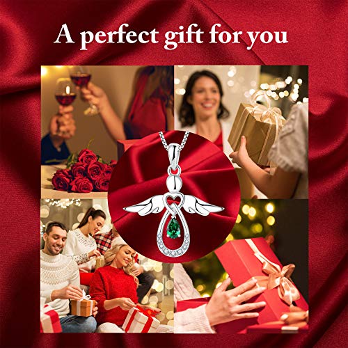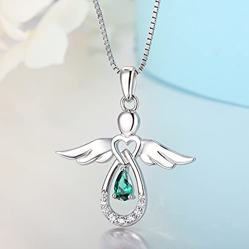FJ Collana Angelo Custode Donna Argento 925 Collana con Ciondolo Maggio Pietra Portafortuna Smeraldo Gioielli Regalo per Donna