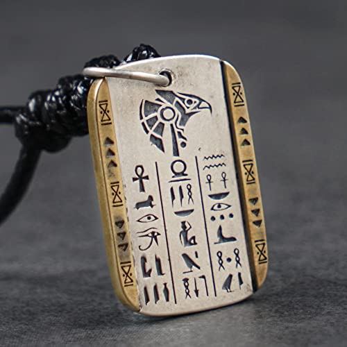 Collana anubi Dio Egiziano con geroglifici in Argento Sterling 925 Bicolore Ciondolo Testa di Lupo per Uomo Donna cordone Nero