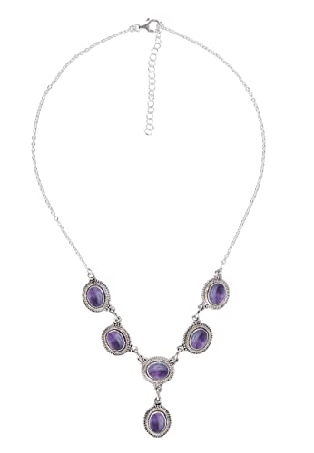 Collana argento 925 con pietre preziose ametista pietra viola Catena in argento sterling da donna in vero argento (MCO-008-01)