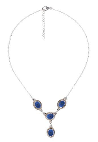 Collana argento 925 con pietre preziose lapislazzuli pietra Blu Catena in argento sterling da donna in vero argento (MCO-002-06)